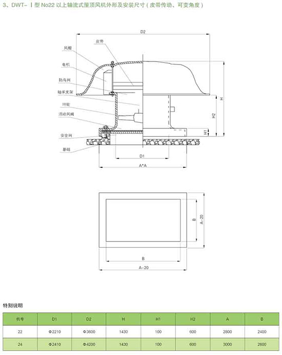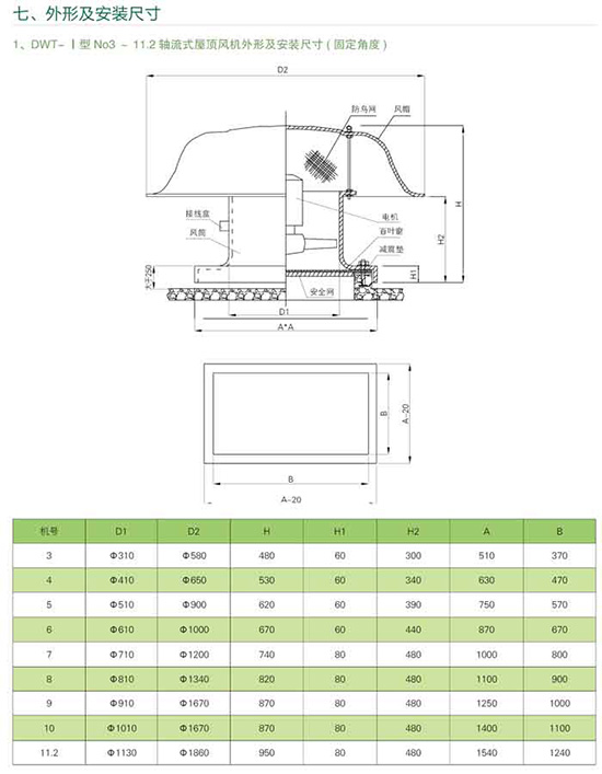 屋頂風機型號、結構及性能:
