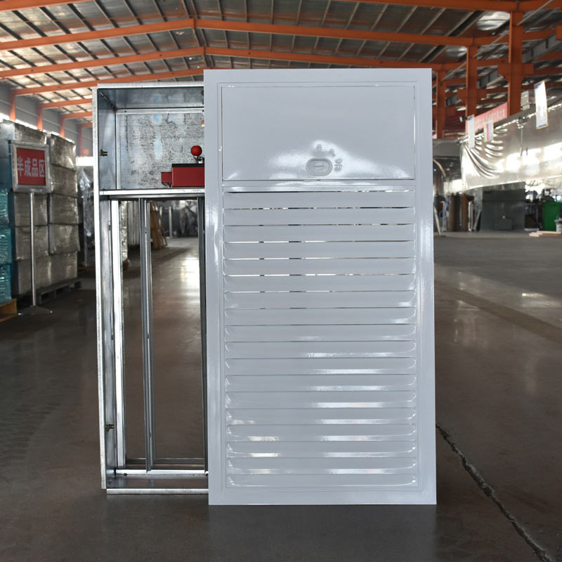 作用:當發生火災時,其內部的電動執行器會打開風口,溫感煙感或者是手動火災報警會開啟,塔樓頂正壓風機自動打開,對送風豎井進行加壓送風,樓梯的前室通過正壓送風口會源源不斷的對前室進行送風,使前室維持正壓,保證煙氣不會在這個區域蔓延,而給人逃生的空間。當溫度高于280°C時人已無逃生可能性,其內部熔斷器會熔斷,風口自動關閉,防止火勢蔓延。