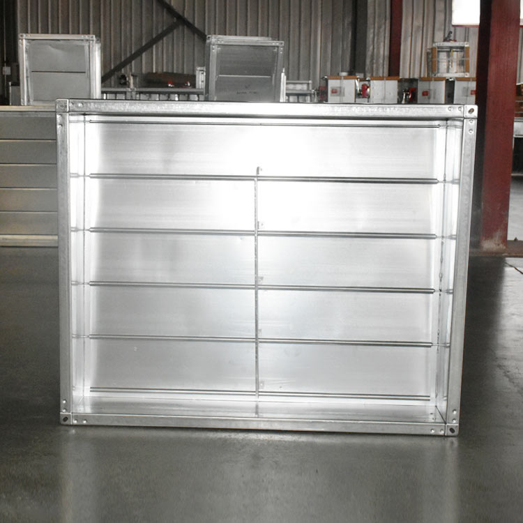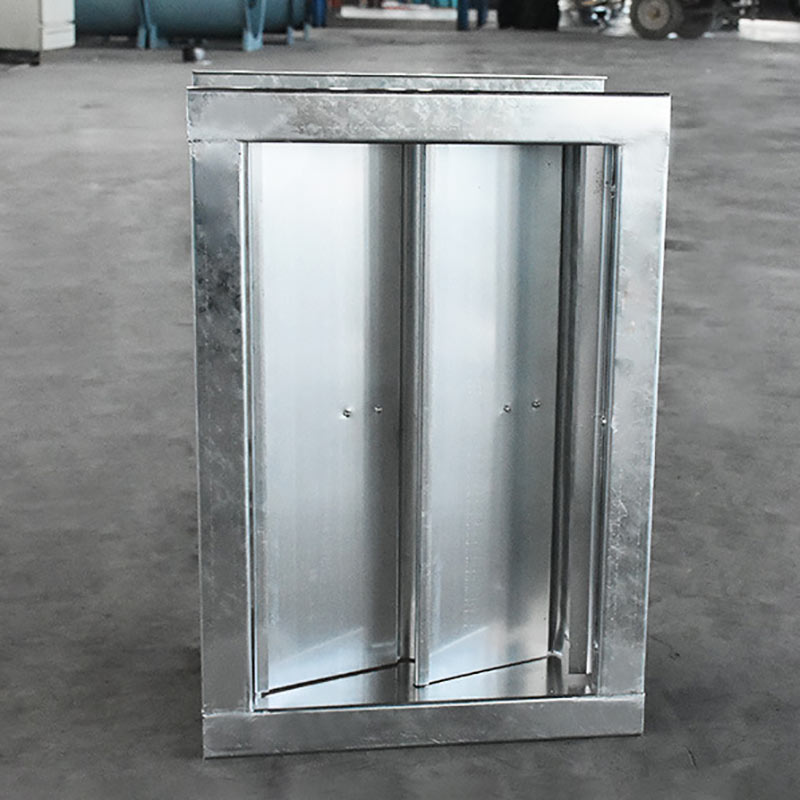 現有一種排煙防火止回閥,轉軸位于進煙口的下部,他的轉軸是活動的,當排煙機開啟時,葉片的底邊轉動使葉片打開,氣流斜著朝上流動進入排煙道,進入排煙 道后對排煙道內上升的氣流影響較小,排煙就會很順暢,排煙量也會很大,排煙機的噪聲就相對較小。當排煙機關閉后葉片的下部設的配重就會把葉片拉回來達到關 閉止回的功能。對過適當的配重設置可以使葉片的開啟角度接近90度。