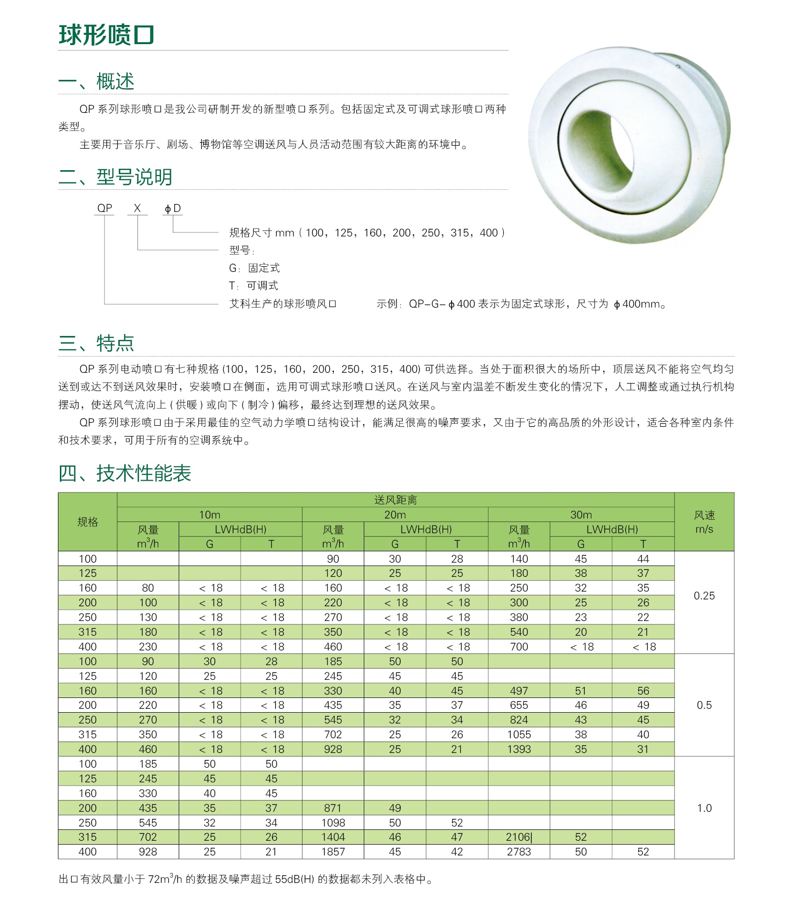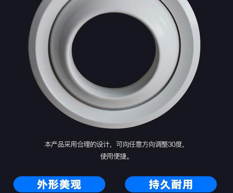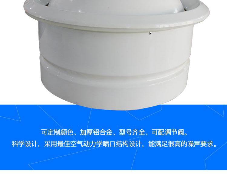 球形噴口由于采用最佳的空氣動(dòng)力噴口結(jié)構(gòu)設(shè)計(jì),達(dá)到了理想的噪聲控制,由于它的高品質(zhì)的外觀設(shè)計(jì),所以廣泛應(yīng)用于體育管、音樂廳、劇場(chǎng)、博物館、會(huì)議廳等高級(jí)場(chǎng)所。