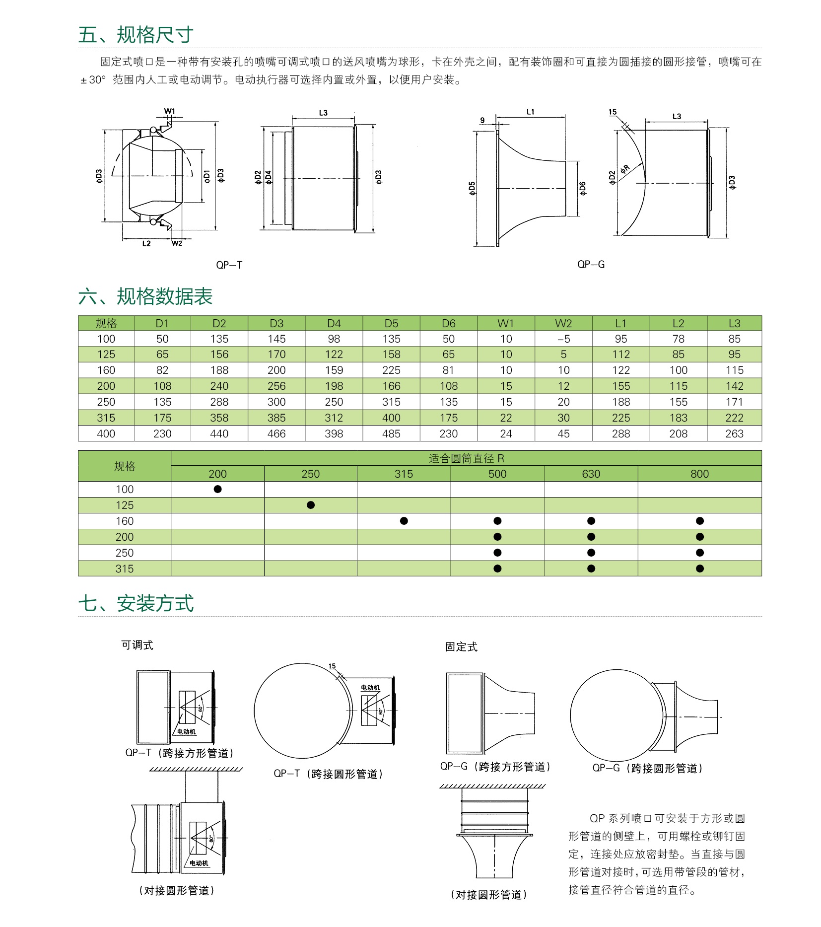常用規(guī)格尺寸:Φ100、Φ125、Φ160、Φ200、Φ250、Φ315、Φ360、Φ400、Φ500、Φ630