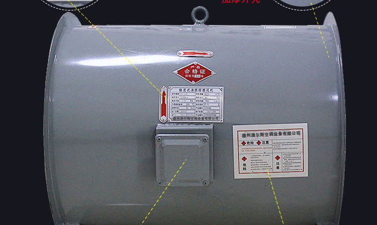 該風機可根據建筑建設的要求采用臥式立式和吊式安裝。電源三相380V 50Hz。