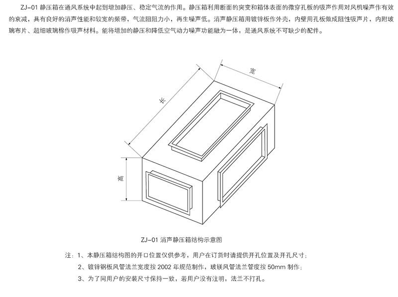 4、ZS靜壓箱可用來(lái)減少噪聲,又可獲得均勻的靜壓出風(fēng),減少動(dòng)壓損失。而且還有萬(wàn)能接頭的作用。把靜壓箱很好地應(yīng)用到通風(fēng)系統(tǒng)中,可提高通風(fēng)系統(tǒng)的綜合性能;